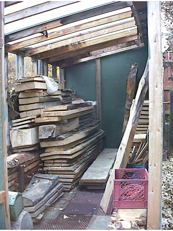 What I will focus on is methods of using and obtaining wood that minimize your environmental impact on a local and regional scale. This is by no means a comprehensive essay, just an overview of some methods I have found that work. I don't save a lot of money, after you factor in the time and tools that it takes to mill, stack, dry and process the lumber, but it is less expensive than buying hardwood from a dealer. On the other hand, where else can you get 12 foot long quartersawn redwood or oak 2" thick and 12" wide? Not likely. Of course, to get gems like this, you need a network of friends to keep their eyes open, be aware of weather events that might make trees fall down, and do some driving and knocking on doors, but you'd be surprised how much usable wood is just thrown in the dump or goes up the chimney.